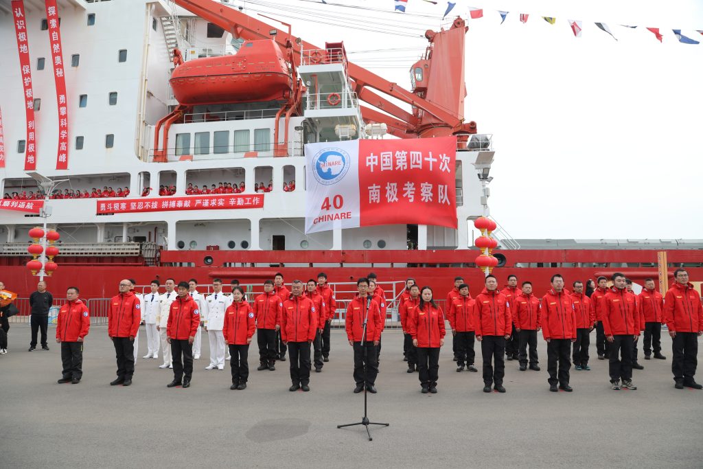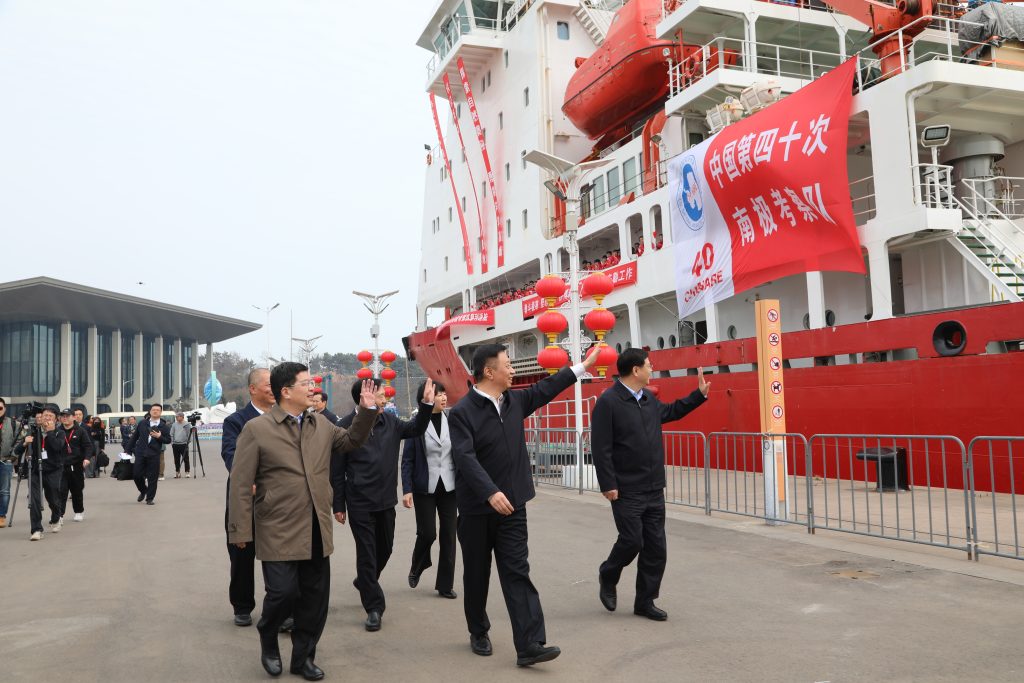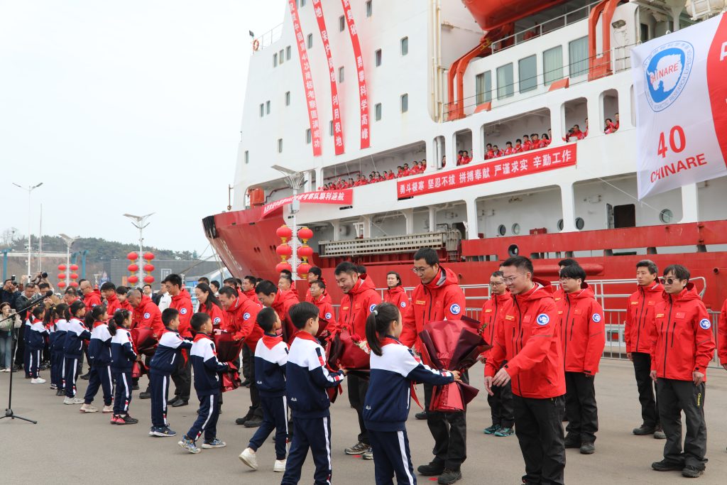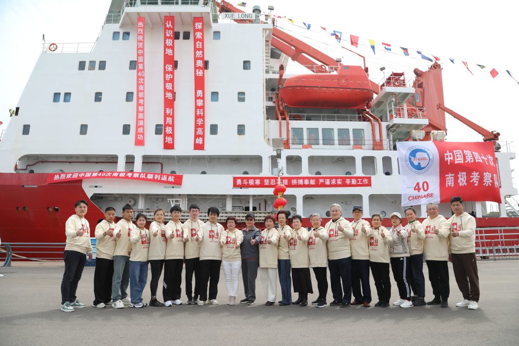 4月10日,中国南极考察队乘坐“雪龙”号极地考察船停靠山东青岛,标志着由自然资源部组织的中国第40次南极考察圆满结束。自然资源部领导、山东省人民政府领导、青岛市人民政府领导,驻青参航单位、海洋执法队伍、学生代表等组织单位共计200余人,在青岛奥帆基地码头举行了欢迎仪式。