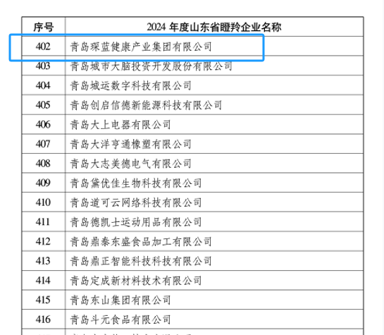 琛蓝健康产业集团凭借卓越的高成长性、高发展潜力和高科技创新能力,获评2024年度山东省瞪羚企业。