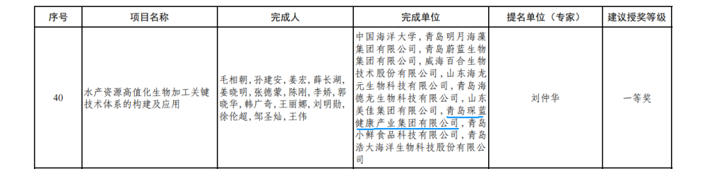 根据公示信息,琛蓝健康产业集团“水产资源高值化生物加工关键技术体系的构建和应用”,凭借前沿性科研创新理念,引领性关键技术体系,以及在市场转化应用中取得的突出成绩,获得“2024年度山东省科学技术进步一等奖”。